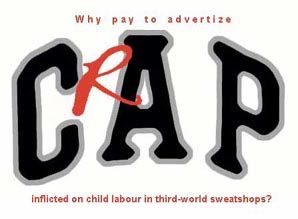 Worse still, many of the corporations whose logos are most frequently flaunted on people's clothing have an attrocious record on human rights. Child labourers suffer under appalling conditions in third-world sweatshops. Such exploitation means extra profits for the companies who sell supposedly trendy trainers and coporation-stamped track suits. If you don't believe this, check out books like Hidden Agendas or Heroes by John Pilger, or Sweatshop Warriors by Miriam Ching Yoon Louie, or No Logo by Naomi Klein; or visit a site like Nike Watch. or any of the others listed on this page. As US film director Michael Moore put it, when will we get to the point where we realise that the rest of the world shouldnt have to live in poverty so we can have nice running shoes?. Or why not take a leaf out of a Californian schoolgirls book. Every year a few of my new students can be seen parading their Nike swooshes, Gap logos, Reebok blobs and Adidas hemp leaves round campus. Those students have paid Nike and the like for the brand-marked clothing but it is the corporations who should have paid the students to act act as billboards for their products. The students are clearly unaware of the issues involved and need some background information. Those uninterested in ethical issues may at least be concerned about their street cred (e.g. being branded as fcuk-wits). As lecturer in music rather than in politics, marketing, business studies, ethics or economics, I cannot make my own opinion known in the classes I teach. I can, however, express my views on my own website hence this page. I can also exhibit part of my own political identity as a fervent anti-capitalist by showing opposition to brand buffoonery hence the next part of this page. Anti-brand posters, stickers and transfers The pictures below can be printed out as posters or as stickers (on sheets of labels). They can also be used as transfers that can be ironed on to T-shirts, college sweaters, baseball caps, etc.