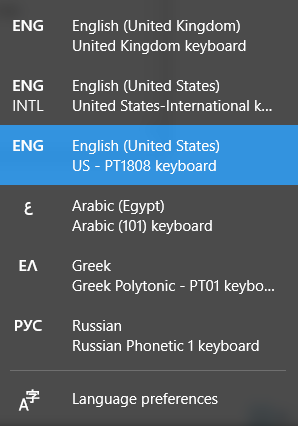 keyboard layouts youve installed.