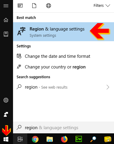 and start typing Region & language. That should bring up this